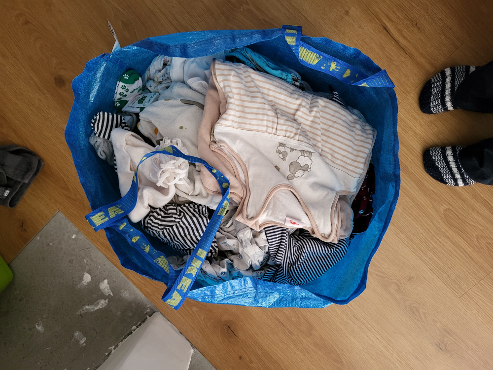 Wir verschenken einen Sack voll Gewand - vor allem Pyjamas, ein paar Bodys, schlafsäcke und Hosen sind auch dabei. Von 62 bis 92 - wir haben sie selber geschenkt bekommen und das darf jetzt weiterziehen.