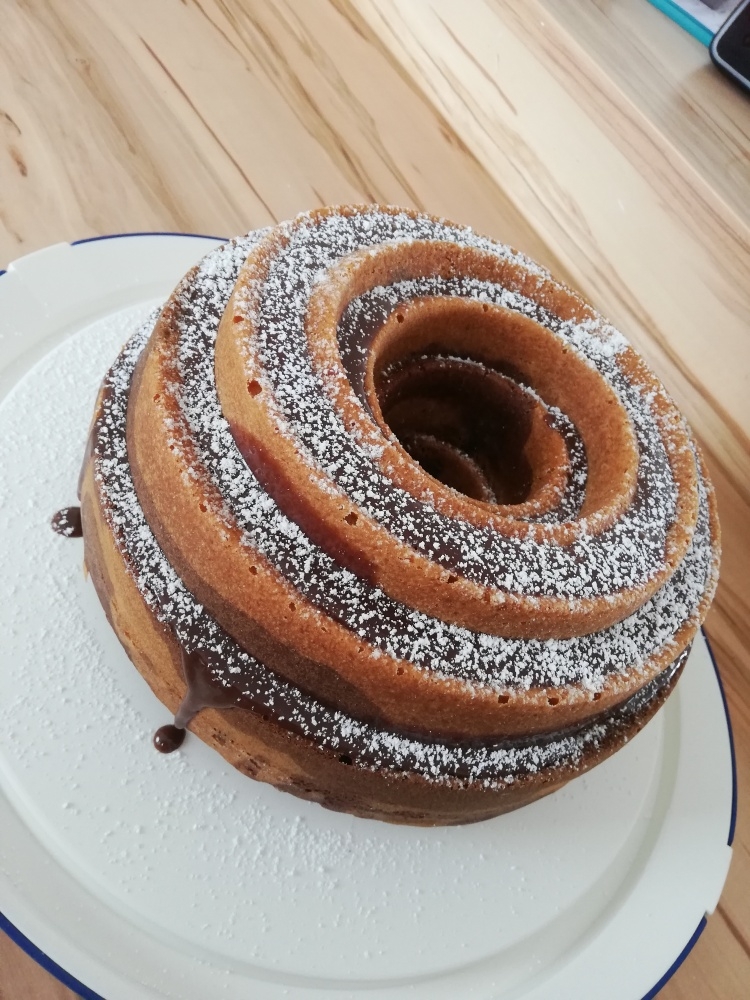 @menina der hat heute auch irgendeine Form angenommen, weiß nicht wie der Kuchen das geschafft hat, aber Hauptsache es schmeckt 😂