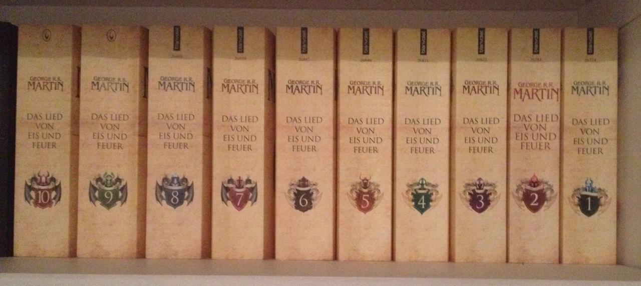 Verkaufe die ersten 10 Bände von Game of Thrones (btw das Lied von Eis und Feuer). Sind in hervorragendem Zustand, da ich auf meine Bücher sehr achte. Als kleines Weihnachtsgeschenk an den Käufer leg ich den neuesten Band "Der Heckenritter - Das Urteil der Sieben" drauf. BF-Spezialpreis: 100 Euro