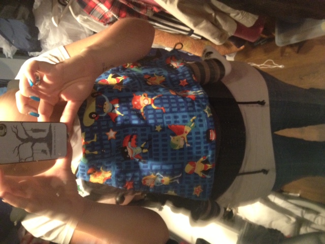 Träger aus Cordstoff; innen Tragetuchstoff